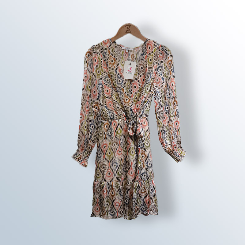 Women's V-neck floral dress with long sleeves