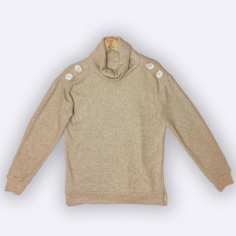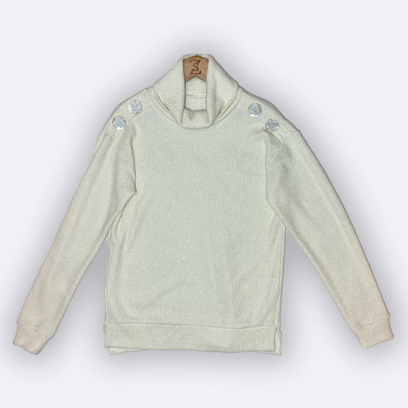كنزة تريكو فضفاضة بياقة عالية ومحكمة مزينة بأزرار على الأكتاف.