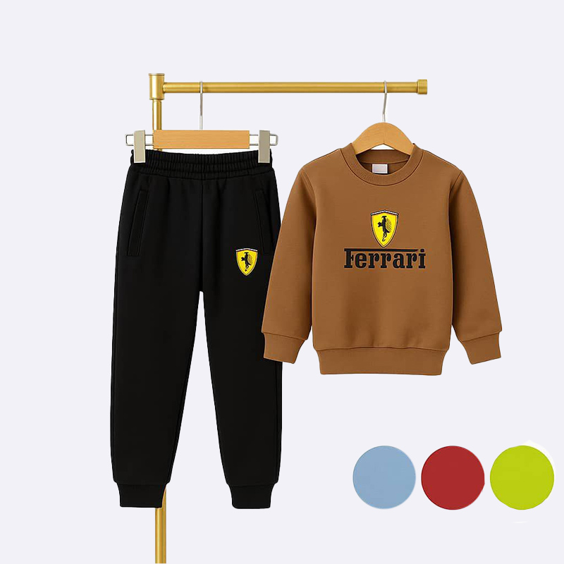 طقم شتوي رياضي مريح من قطعتين للأطفال يحمل شعار فيراري الشهير.