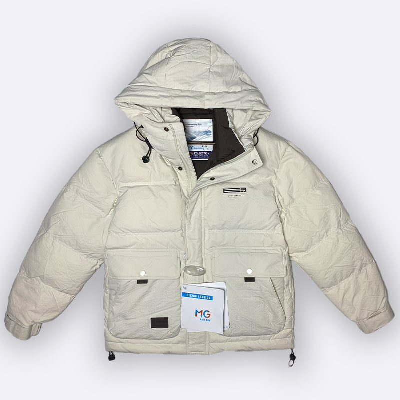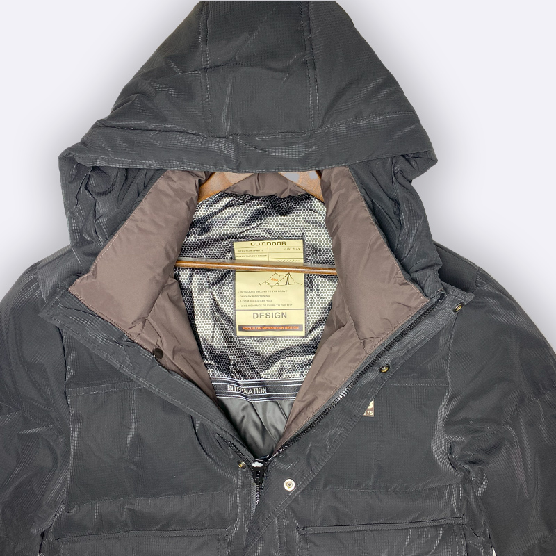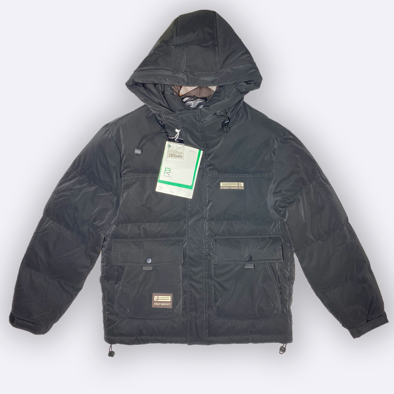 جاكيت رجالي شتوي عالي الجودة، مقاوم للماء بالكامل Waterproof ومبطن بحشوة ريش دافئة تمنحك أفضل عزل حراري. تصميم عملي مع قبعة ثابتة وجيوب أمامية متعددة، مناسب للأيام الباردة جداً وللاستخدام اليومي.