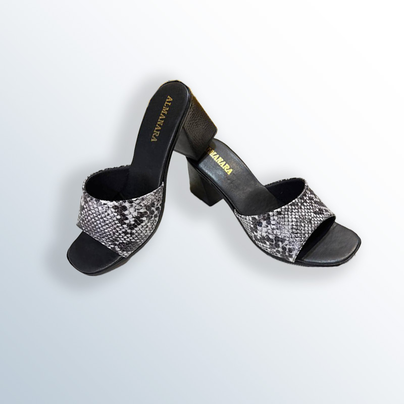 Casual Chunky-Heel Sandal with Snake Skin Pattern