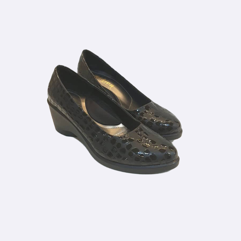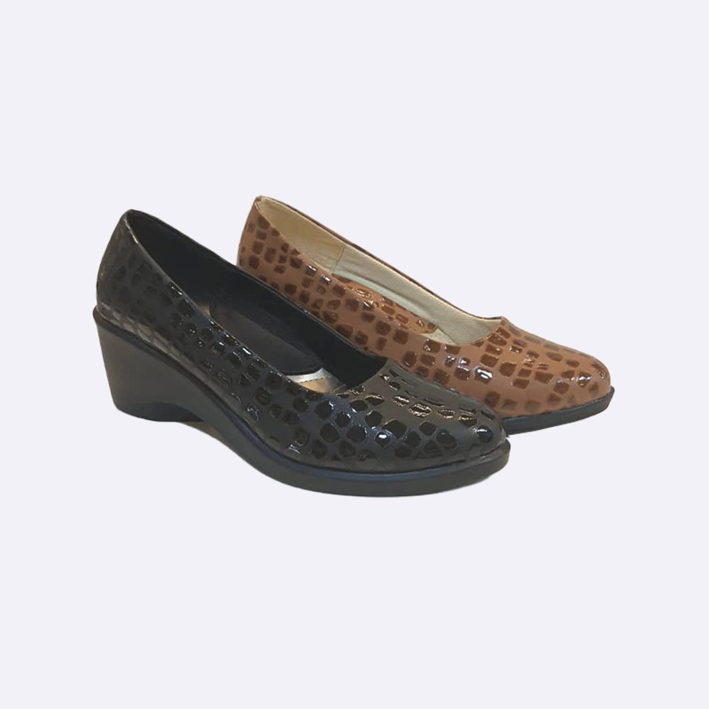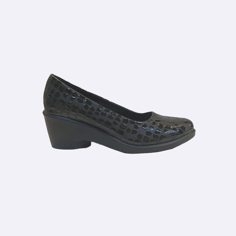 حذاء نسائي بتصميم أنيق ومريح، يتميز بنعل طبي ومقدمة مستديرة، مناسب للاستخدام اليومي والعمل.