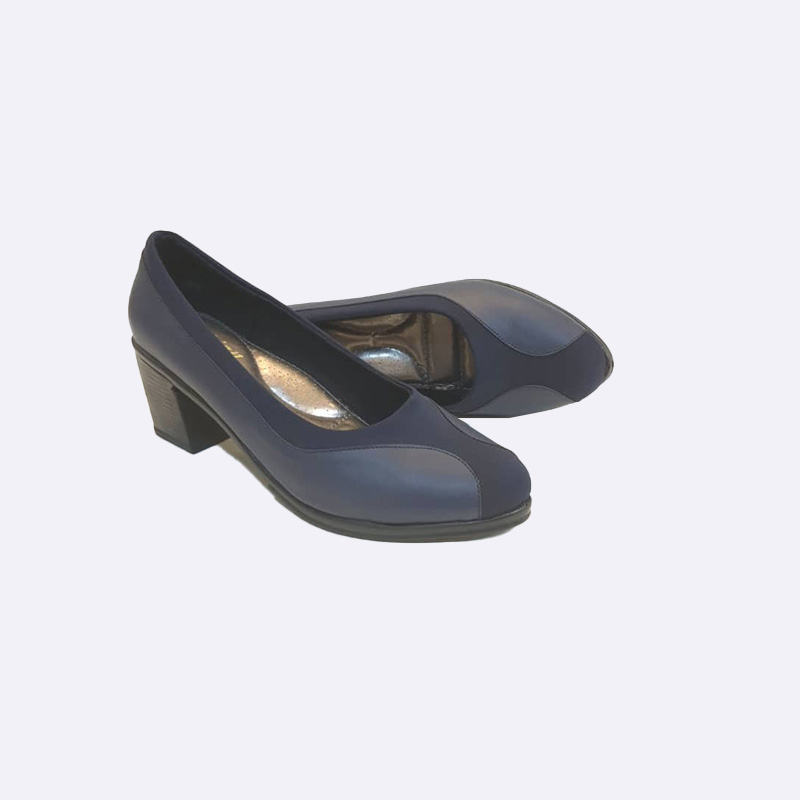 حذاء نسائي باللون الكحلي يتميز بتصميم أنيق ومقدمة مدببة، وكعب عريض ونعل طبي مريح، يوفر لك الراحة طوال اليوم
