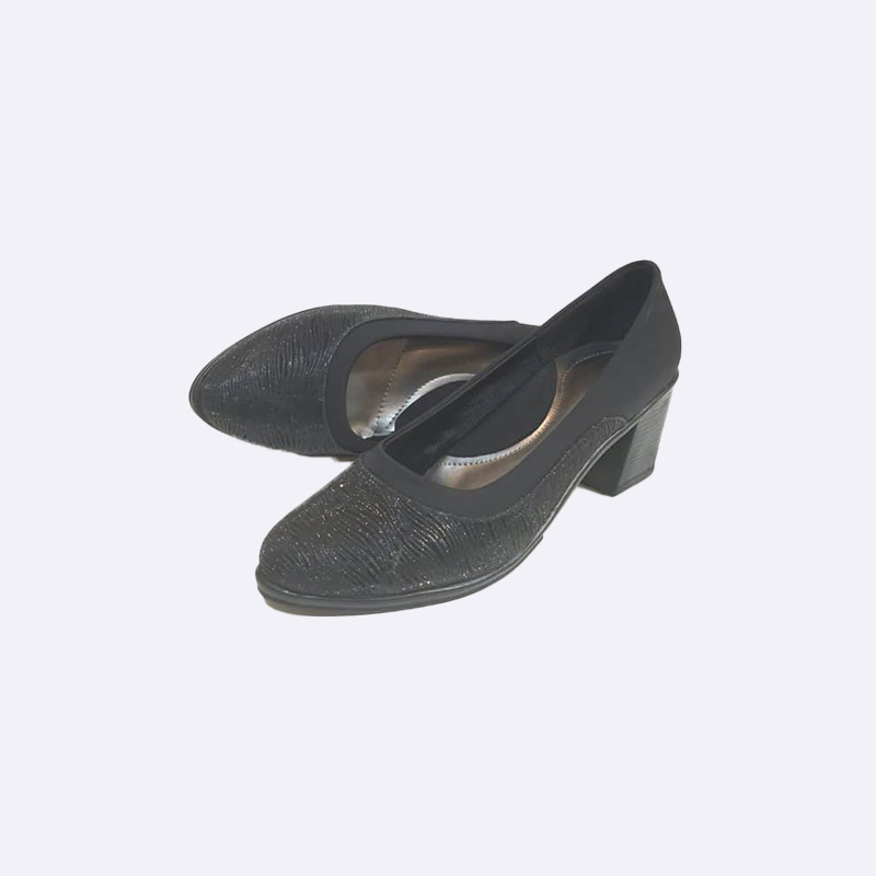 حذاء نسائي باللون الأسود اللامع، يتميز بتصميم أنيق ومقدمة مدببة، وكعب عريض ونعل طبي مريح، يوفر لك الراحة طوال اليوم.