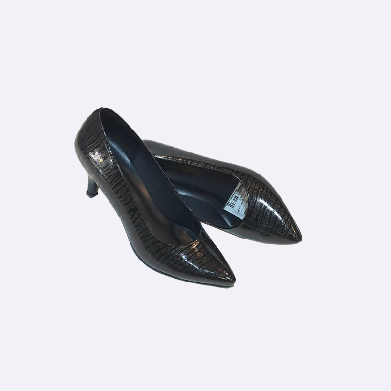 حذاء نسائي بتصميم أنيق ومقدمة مدببة، يتميز بكعب رفيع ومنخفض، مناسب للمناسبات الرسمية والطلعات اليومية