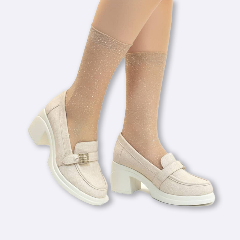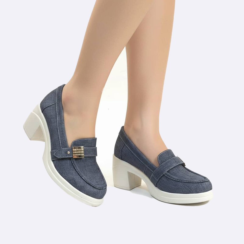 حذاء لوفر نسائي أنيق مصنوع من قماش الجينز بتصميم مريح وكعب عريض ثابت، مناسب للاستخدام اليومي ويمنح إطلالة عصرية ومميزة.