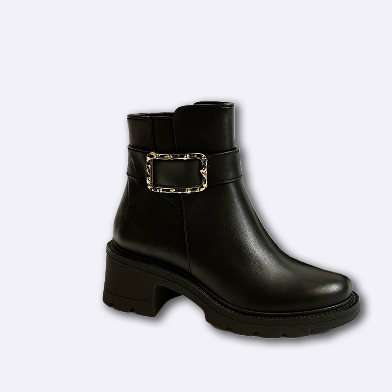 بوت أنيق بتصميم عصري يجمع بين الفخامة والراحة. يتميز بقَصة كلاسيكية مع جزء جانبي منقوش وإبزيم معدني يضيف لمسة فاخرة. كعب عريض ثابت يوفر دعمًا ممتازًا أثناء المشي، مع نعل متين مناسب للاستخدام اليومي. مثالي للتنسيق مع الإطلالات الشتوية والكاجوال الأنيقة.