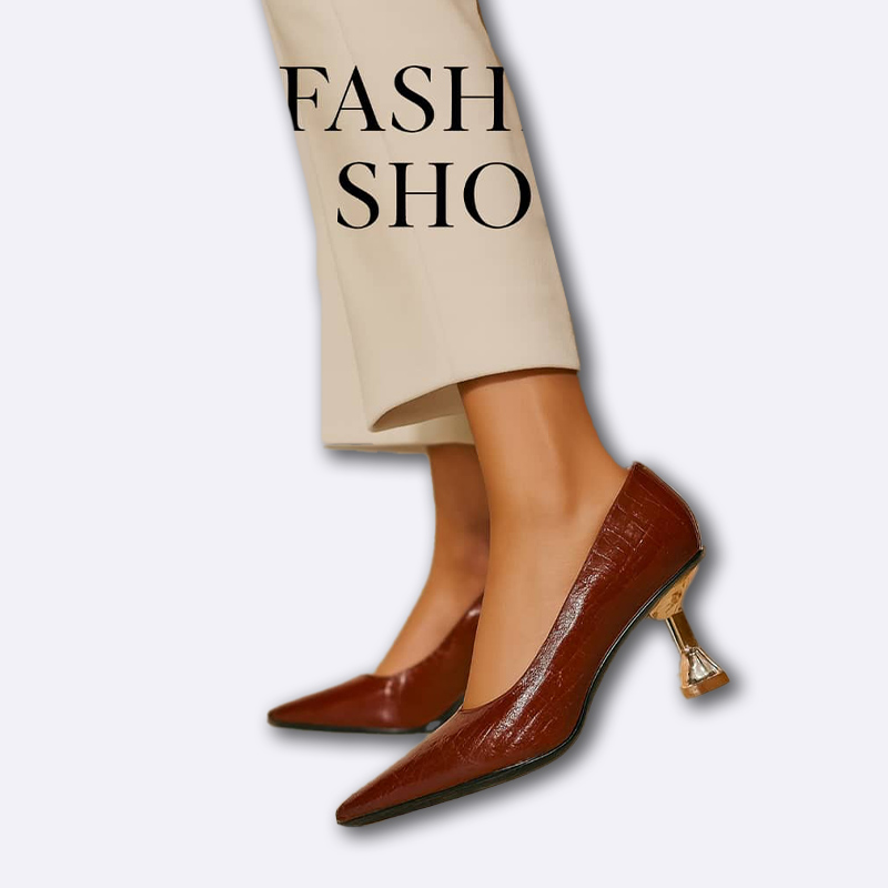كعب نسائي أنيق يتميز بتصميم مقدمة مدببة ونقشة فاخرة تضيف لمسة راقية، مناسب للإطلالات الرسمية والسهرات. يوفر راحة وثبات بفضل كعبه المميز وتصميمه العصري.