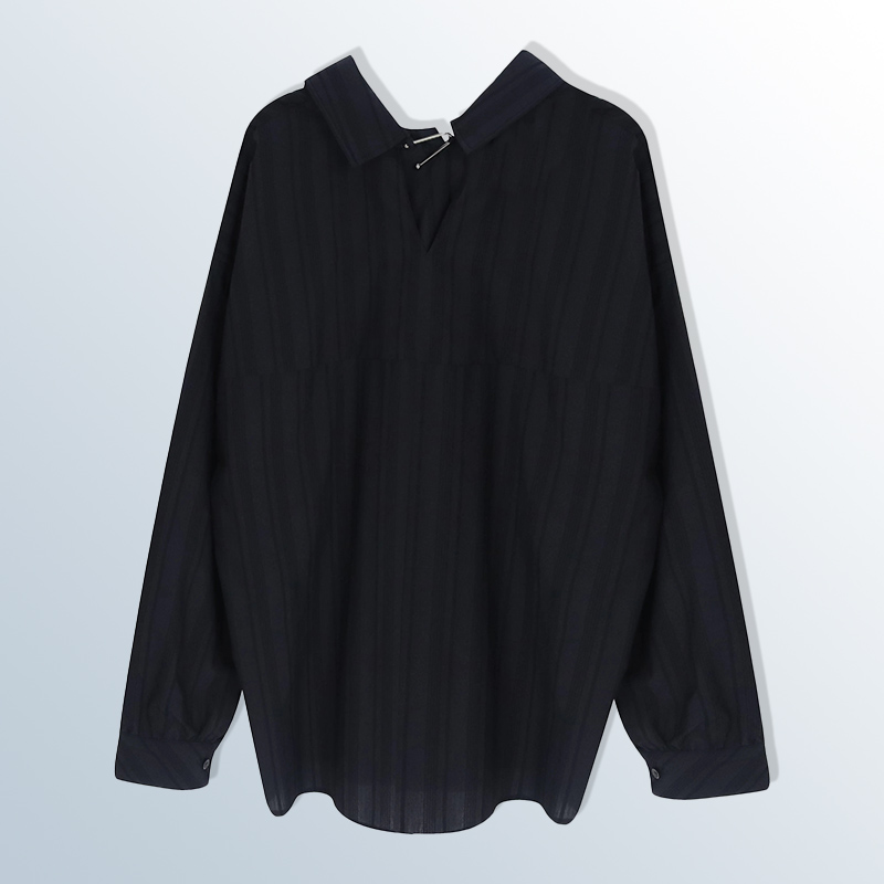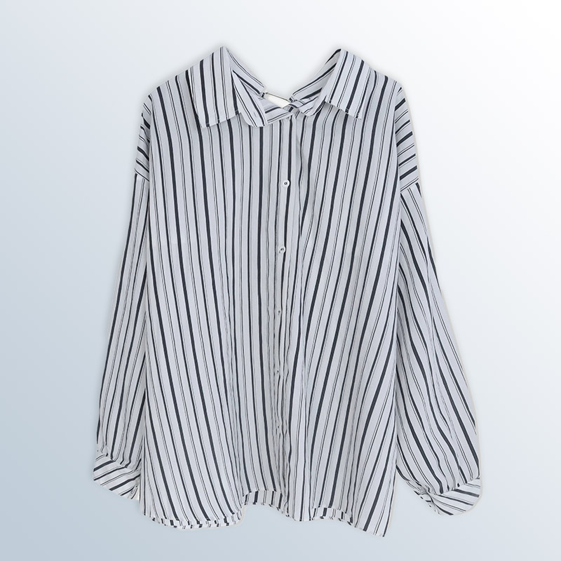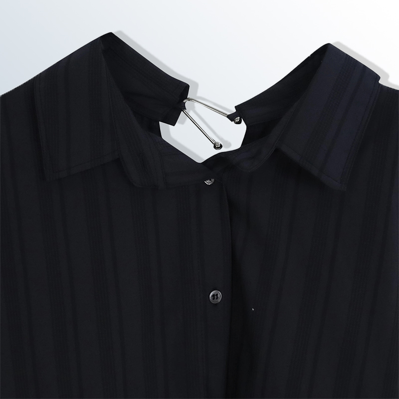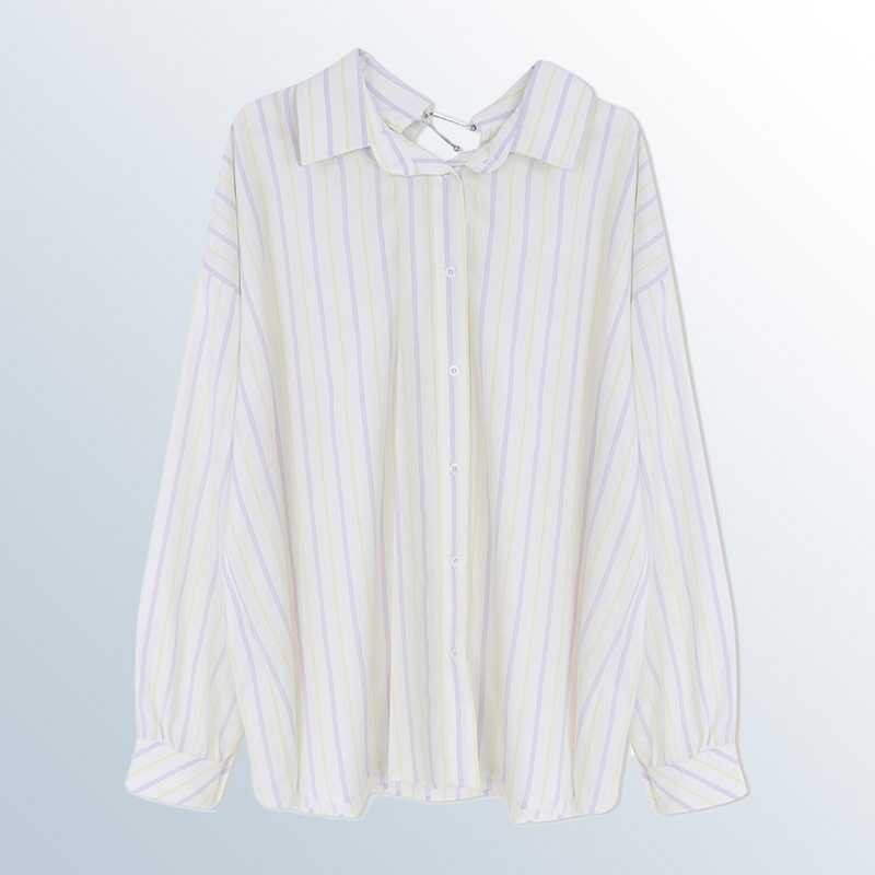 قميص نسائي أنيق بألوان سكري، أسود، ، مخطط أبيض وأسود، ومخطط أبيض وموف. قماش مريح ومرن من القطن 70%، نايلون 27%، سبانديكس 3% لإطلالة يومية أنيقة