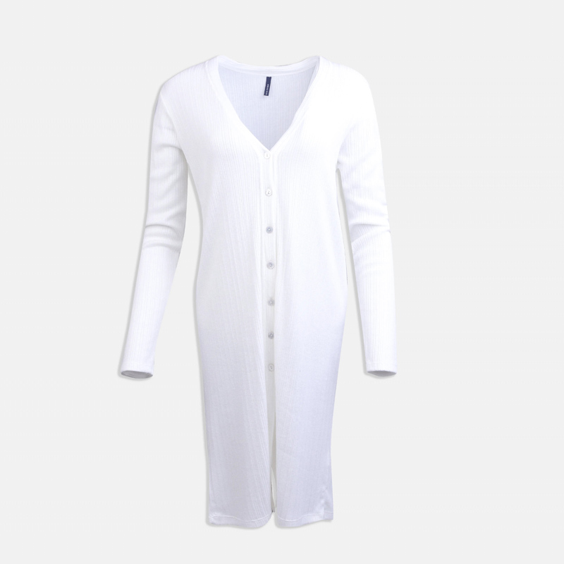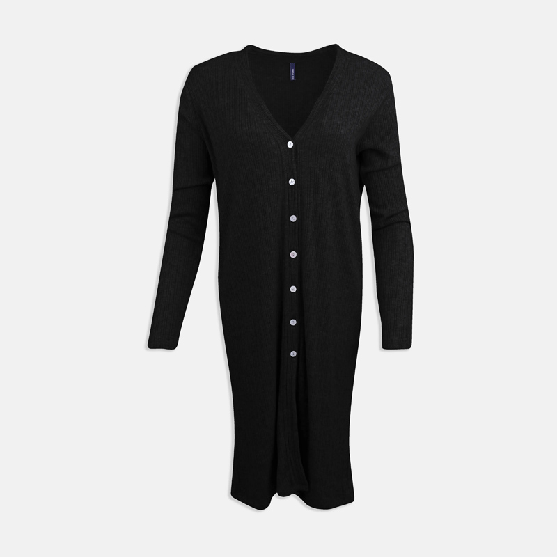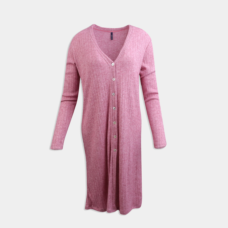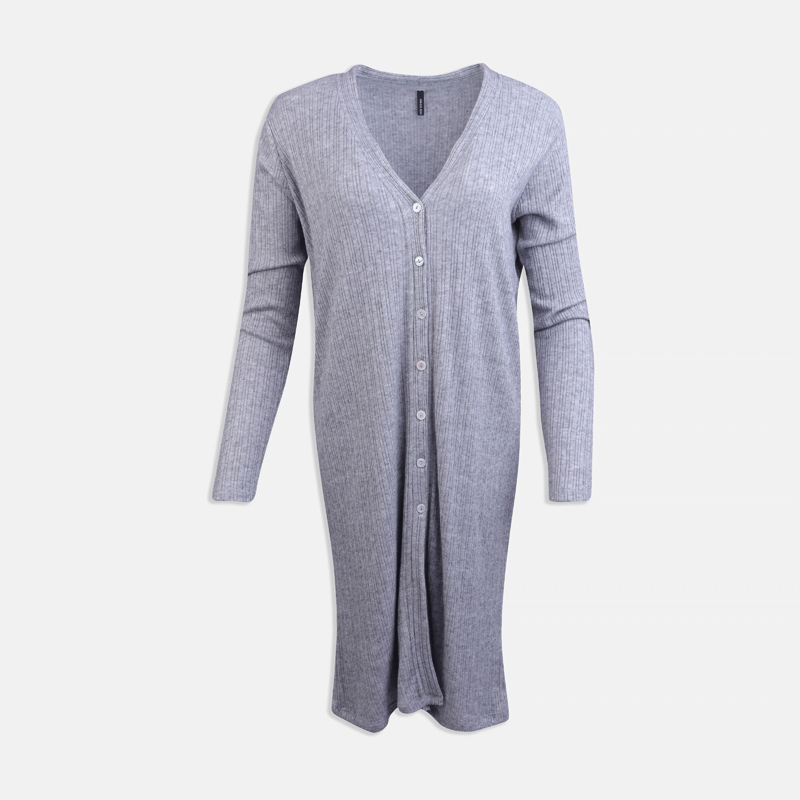 فستان تريكو طويل بأزرار أمامية وخامة ناعمة مريحة.