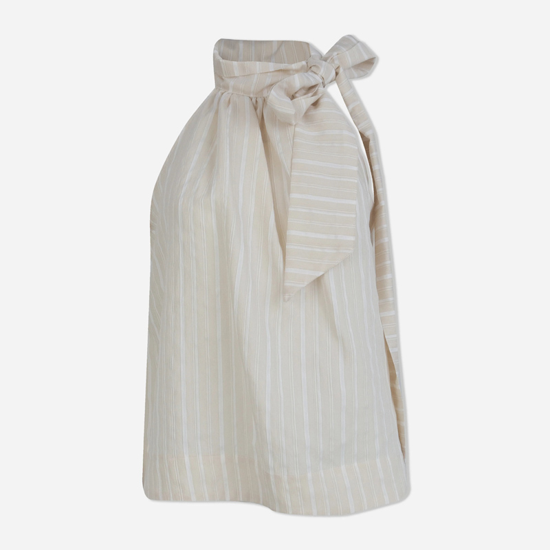 توب يومي ناعم بلمعة خفيفة ولمسة عملية. قصّته متوازنة عند الكتفين والحافة السفلية لتوفير راحة ومرونة، ويبدو رائعًا مع بنطال واسع أو جينز مستقيم لإطلالة متناسقة.