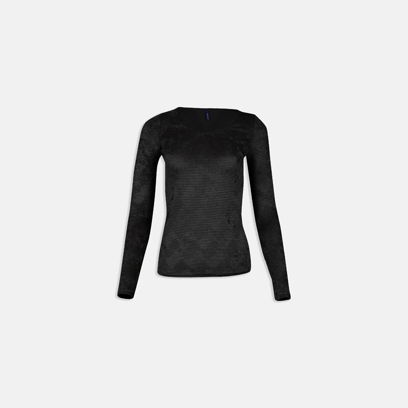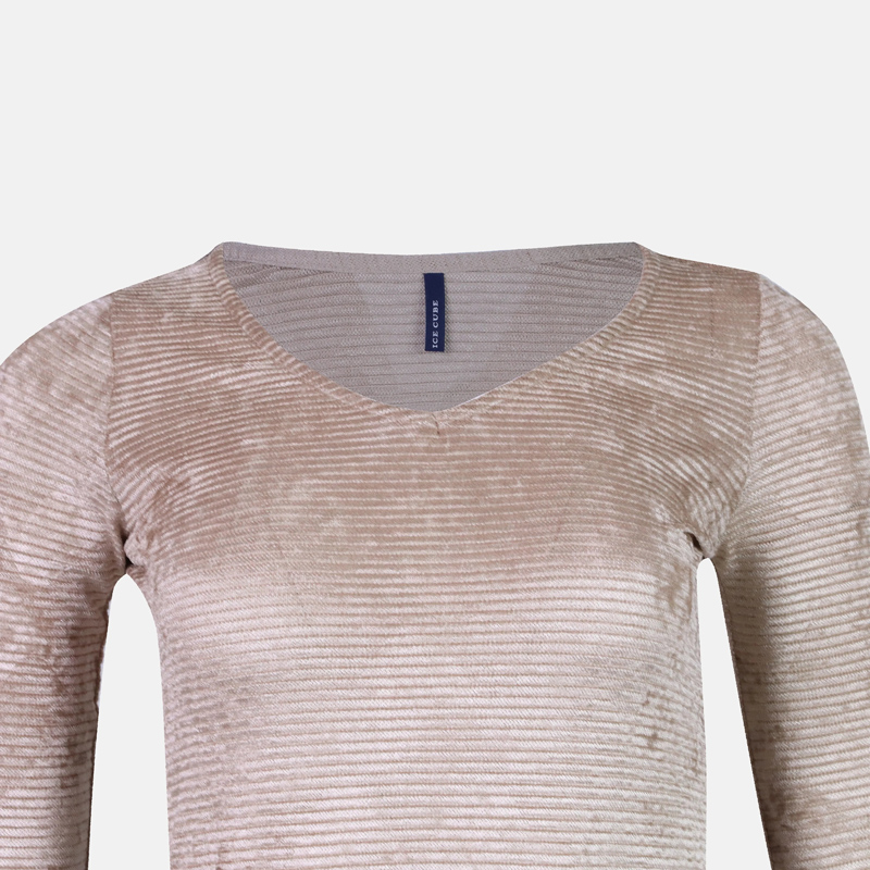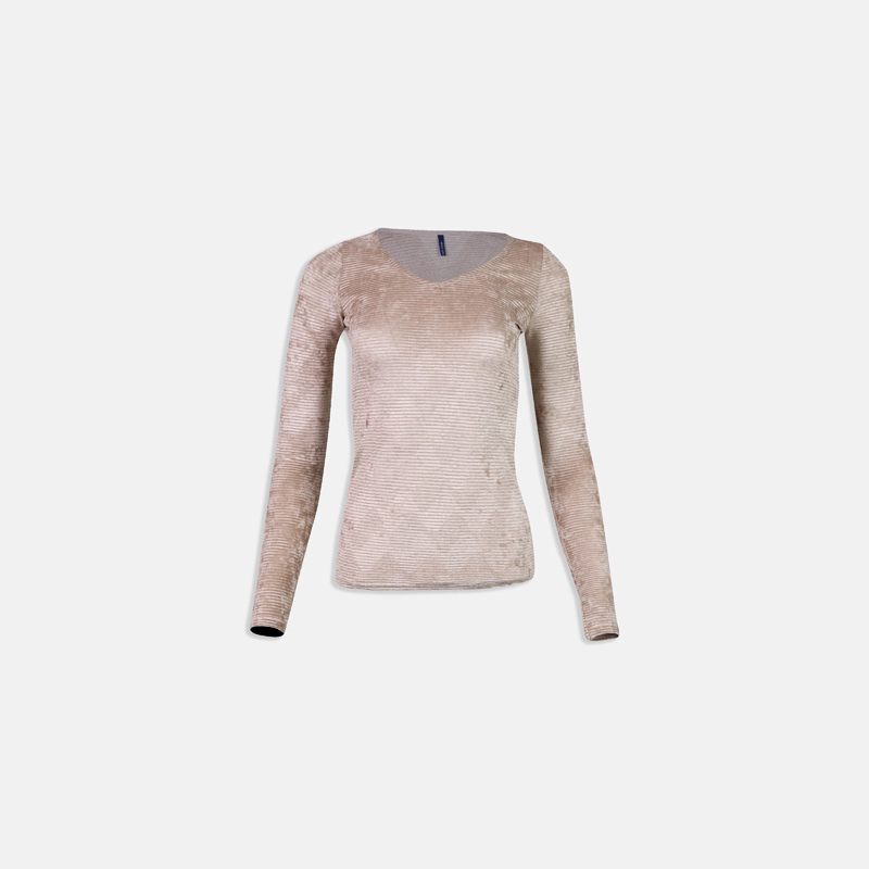 توب يومي ناعم بلمعة خفيفة ولمسة عملية. قصّته متوازنة عند الكتفين والحافة السفلية لتوفير راحة ومرونة، ويبدو رائعًا مع بنطال واسع أو جينز مستقيم لإطلالة متناسقة.