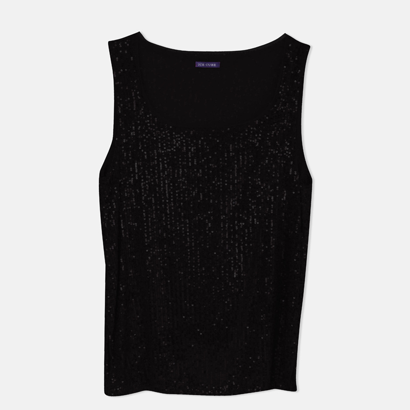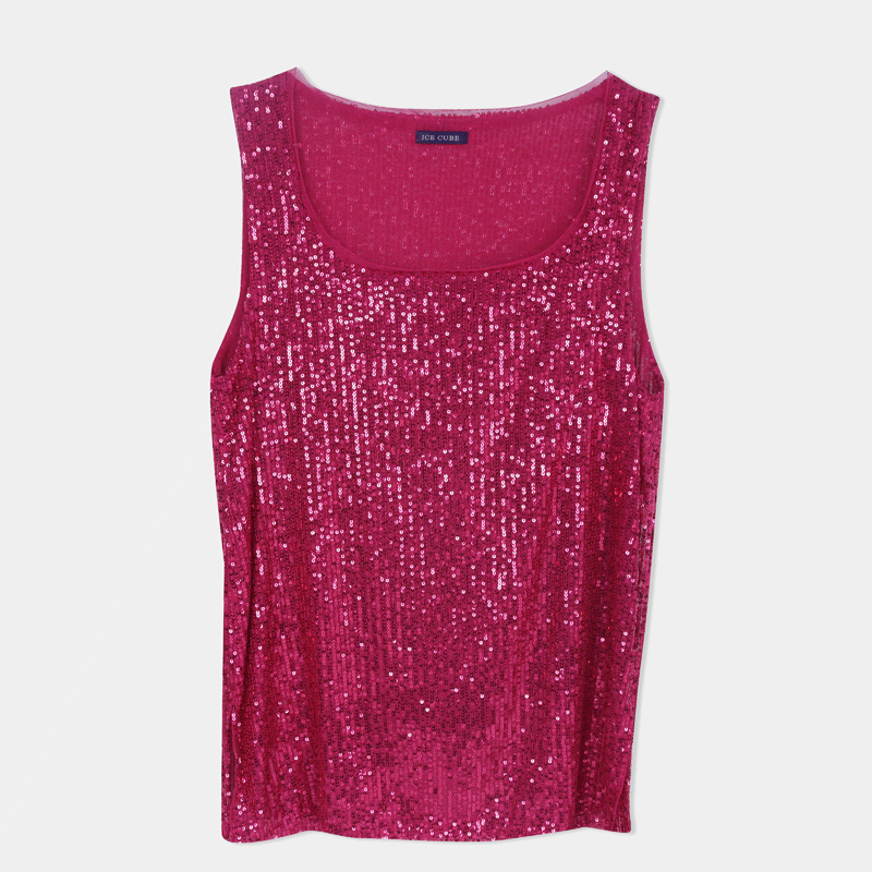 توب بتصميم طبقي لامع يضيف لمسة احتفالية أنيقة. قصّة مريحة مناسبة للارتداء منفردًا أو فوق قميص بسيط، مثالي للسهرات والمناسبات.