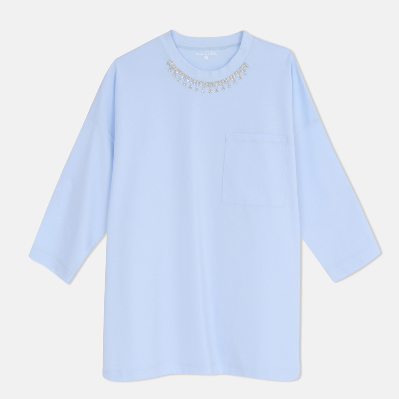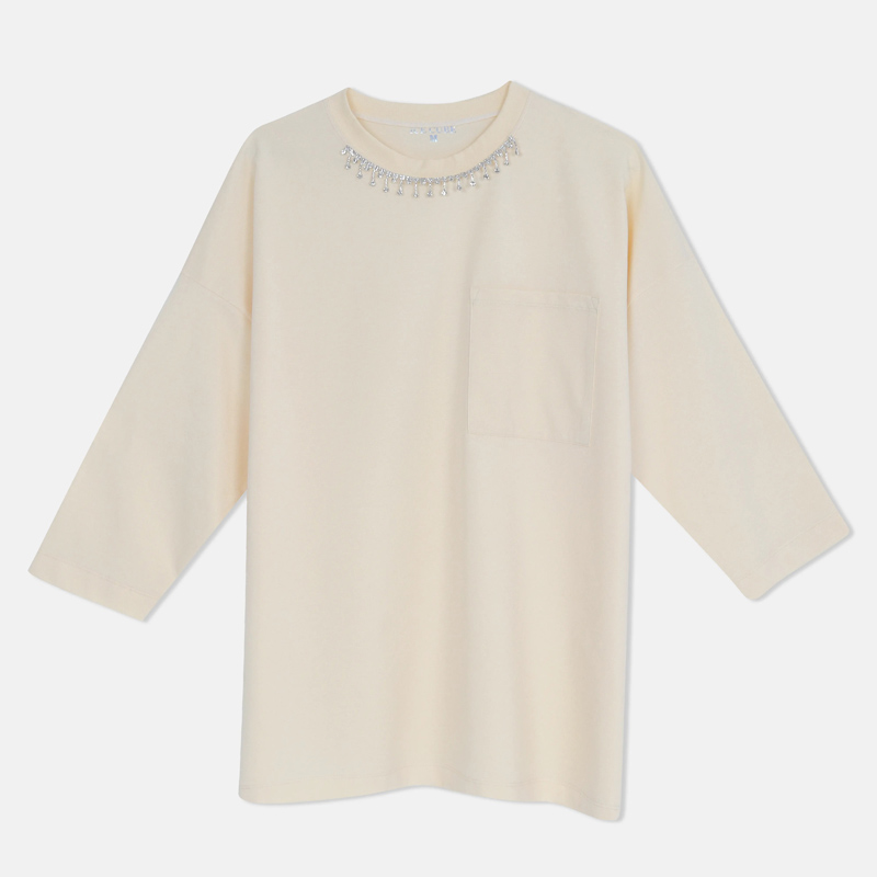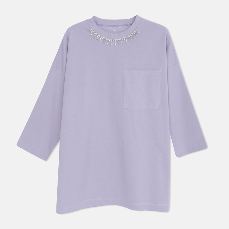 Cotton Blend Sleeve Tunic with Neckline Embroidery
