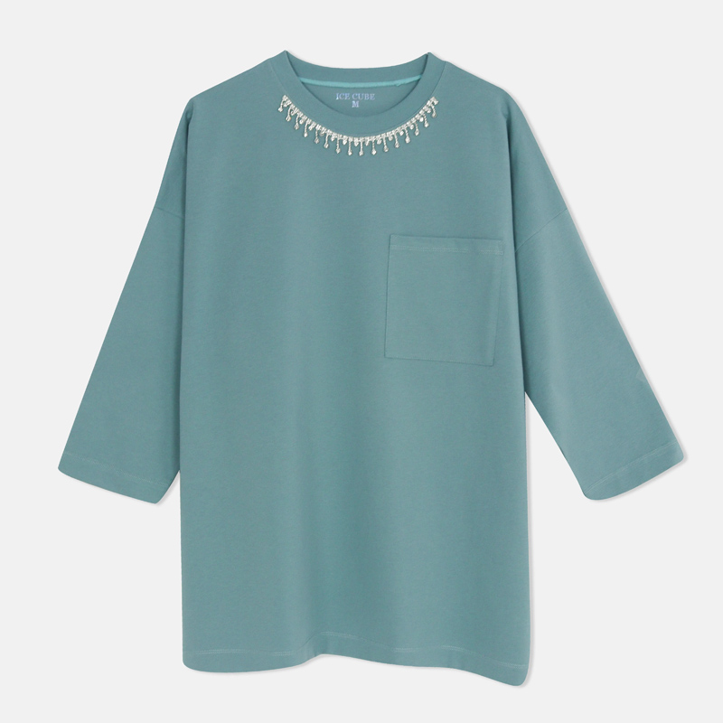 تونيك ناعم بأكمام من قماش مزيج القطن بتطريز أنيق حول الرقبة. متوفر بألوان: أوف وايت، سماوي، نهدي فاتح، أخضر فاتح، رمادي غامق، وأسود. مريح ومثالي للإطلالة اليومية. 72? قطن، 28? بوليستر.