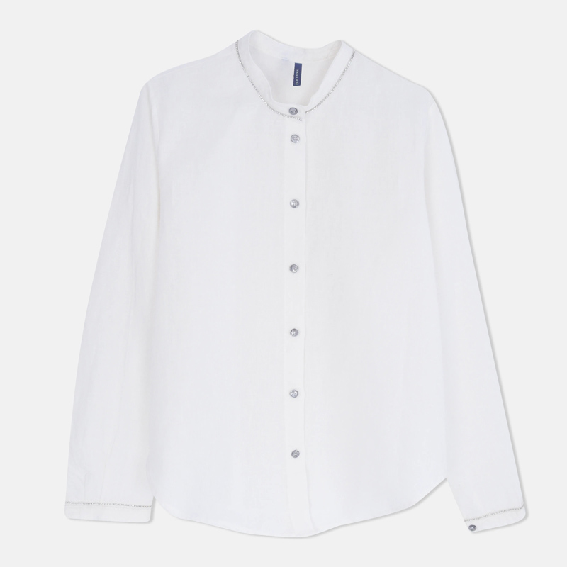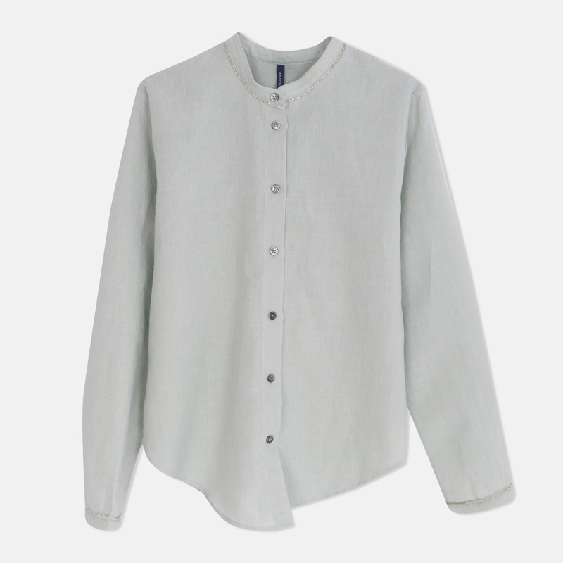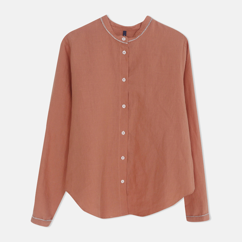 قميص نسائي بياقة ماو مصنوع من قماش راميه 100%، خفيف، مريح، وصديق للبيئة. تصميم أنيق بلمسة عصرية وبسيطة. مثالي للارتداء اليومي أو لإطلالة كاجوال أنيقة. متوفر بالأبيض، البيج، الفستقي، والقرميدي