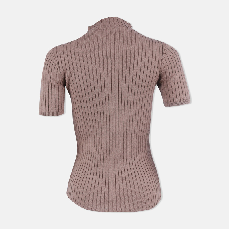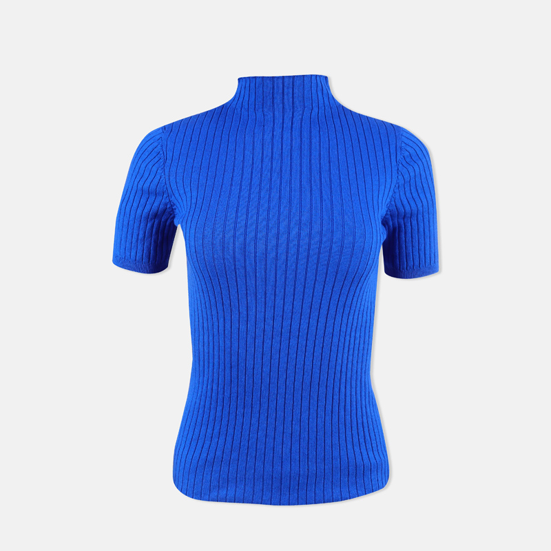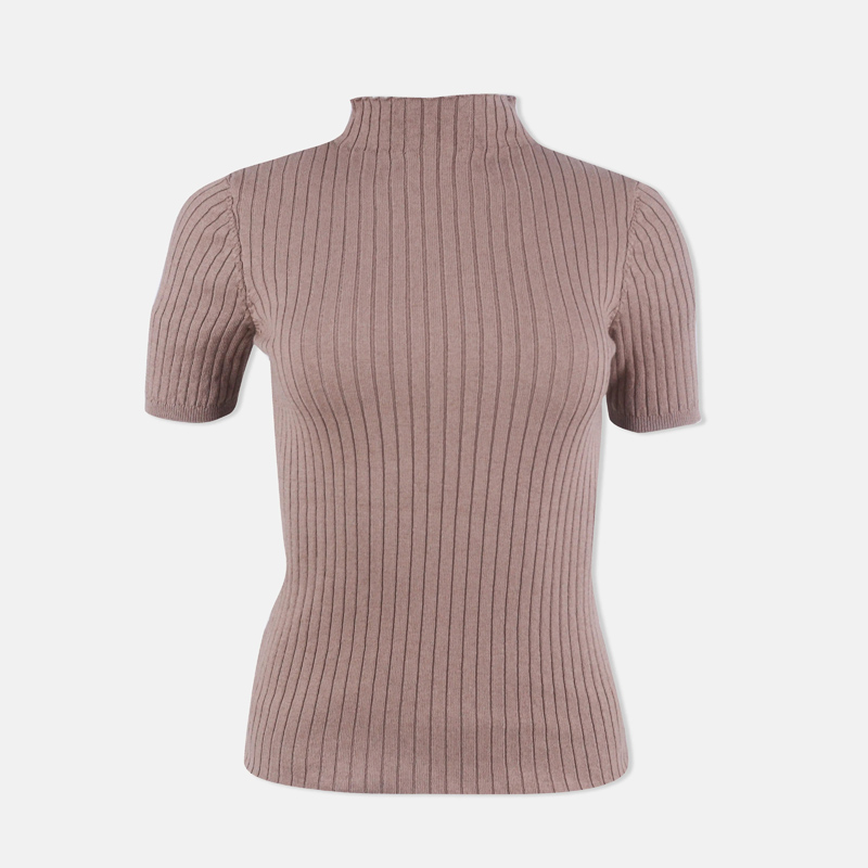 تألقي بإطلالة أنيقة مع توب ياقة عالية بحياكة مضلعة ناعمة. تصميم عصري وخامة مريحة من مزيج المودال والقطن والنايلون. . متوفر بألوان: عفني، بني، أحمر، نيلي، كحلي