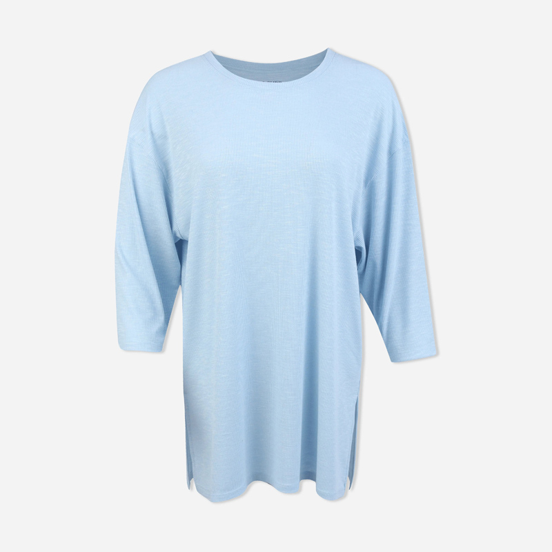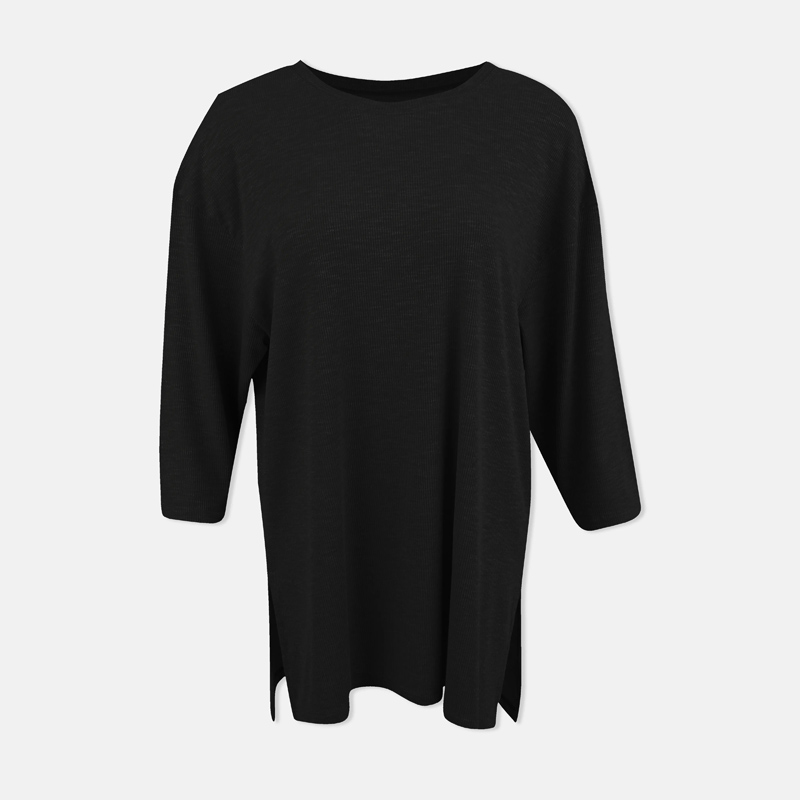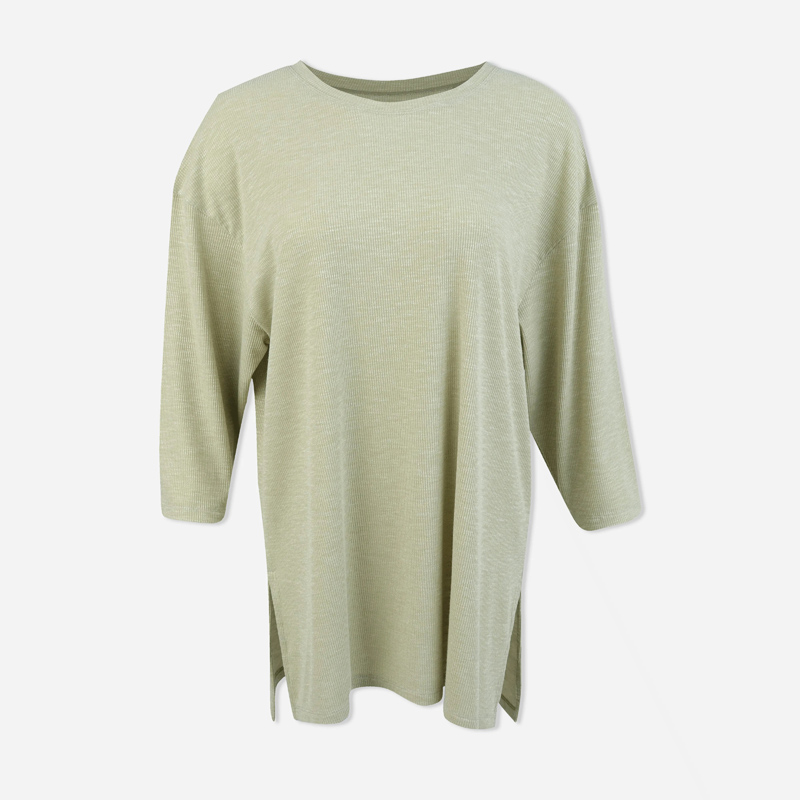 استمتعي بالأناقة والراحة مع تي شيرت نسائي بأكمام طويلة، مصمم بمزيج مثالي من البوليستر (48%)، الرايون (48%)، والإسباندكس (4%). متوفر بثلاثة ألوان رائعة: أزرق فاتح، عفني فاتح، وأسود.