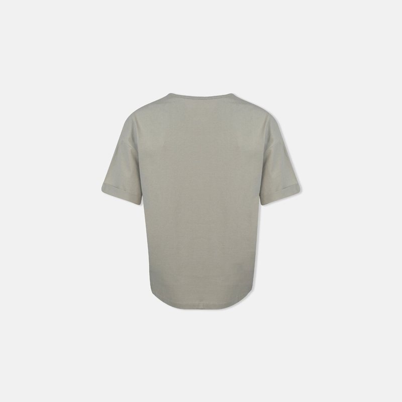 تمتعي بالراحة والأناقة مع هذا التي شيرت النسائي بلون زيتي فاتح. مصنوع من قماش قطني 100% لضمان الراحة والتهوية طوال اليوم. مثالي للاستخدام اليومي، ويعد إضافة مميزة لخزانة ملابسك.