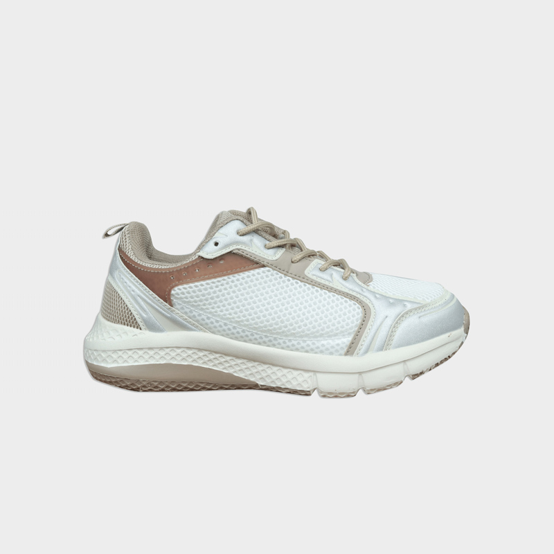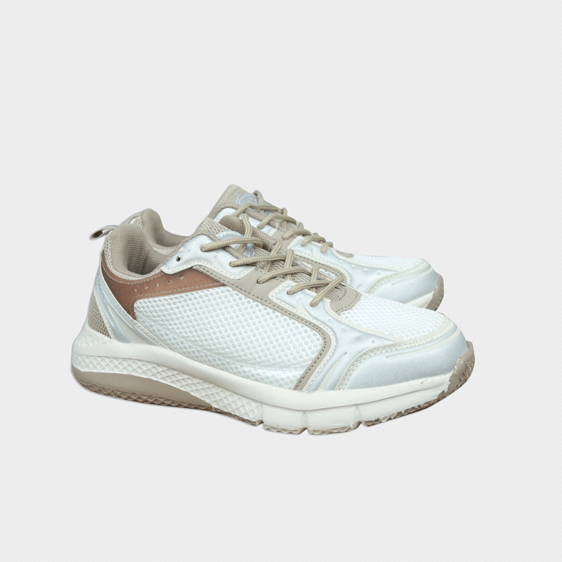 هذه الأحذية الرياضية المصممة للأولاد تجمع بين الراحة والأناقة. تأتي بتصميم عصري مع مزيج من الألوان البيضاء والبيج، مما يجعلها مثالية للارتداء اليومي أو أثناء ممارسة الرياضة.