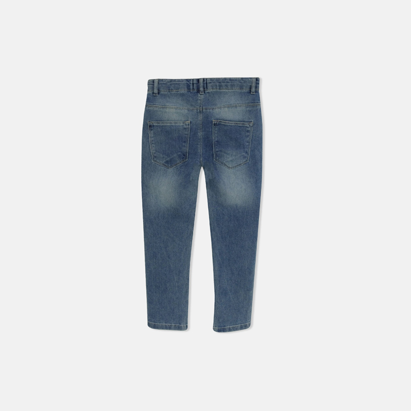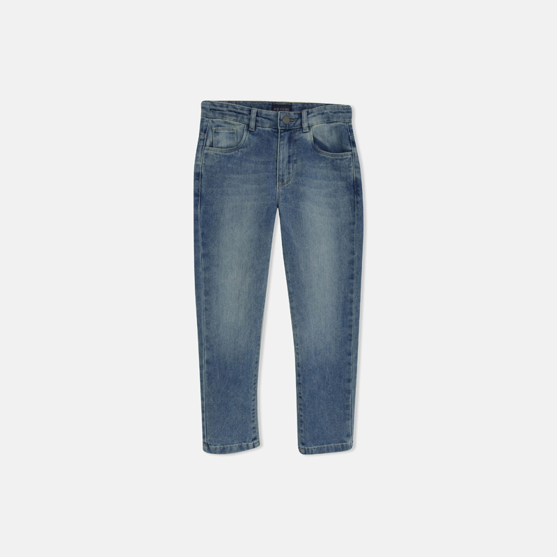 جينز أولادي عصري، يأتي بألوان جينز فاتح وجينز غامق. مصنوع من قماش مريح وعالي الجودة يتكون من 73% قطن و27% إيلاستومولتيستر لمرونة مثالية. تصميم مميز يناسب جميع الأوقات