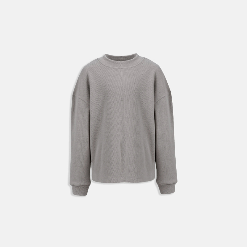 سويتر ولادي مريح وأنيق، مصنوع من خليط 60% بوليستر و30% رايون و10% سباندكس لراحة وحركة مرنة. يتوفر باللونين البيج والرمادي، مثالي للمدرسة والنشاطات اليومية.