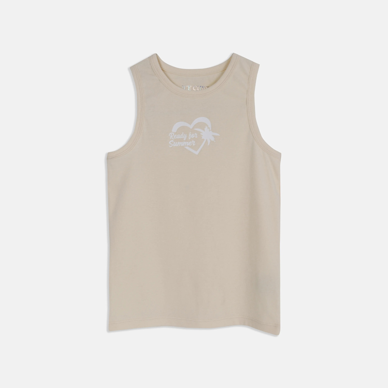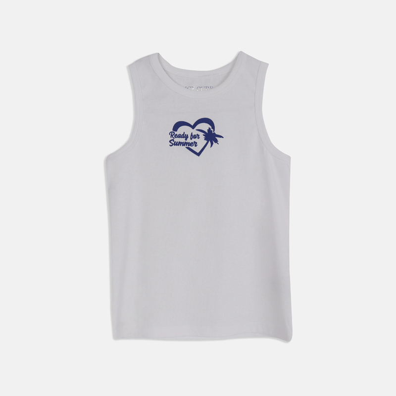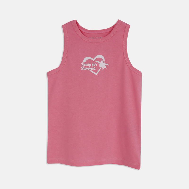 تيشيرتات بناتي بدون أكمام برسومات وألوان: سكري، أبيض، وتوتي فاتح. قماش ناعم ومرن (95% قطن، 5% سبانديكس) يمنح راحة وانتعاش طوال الصيف.