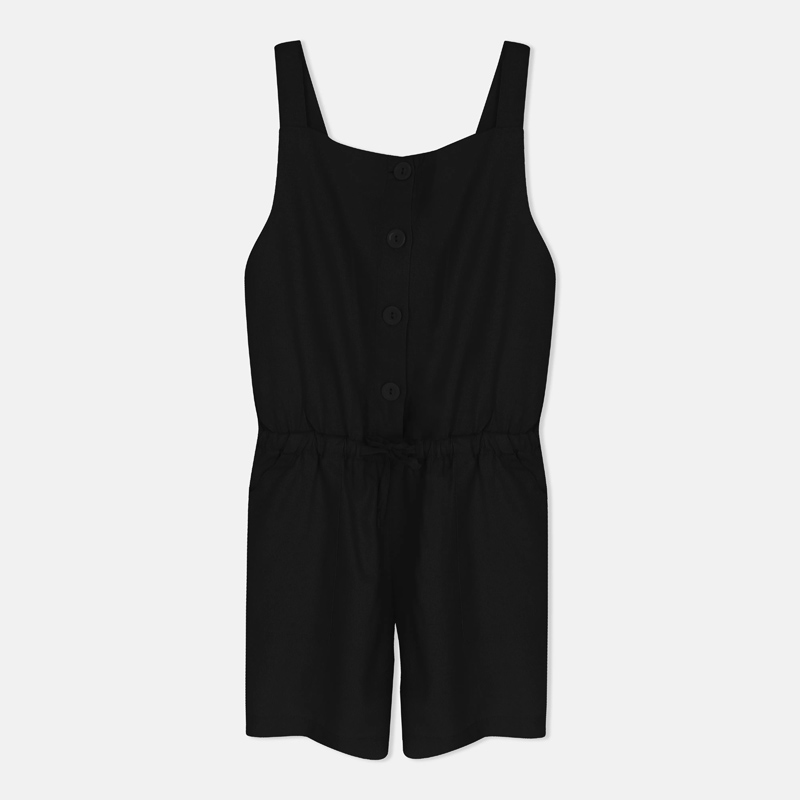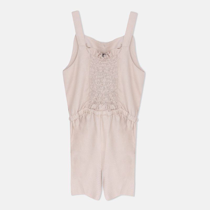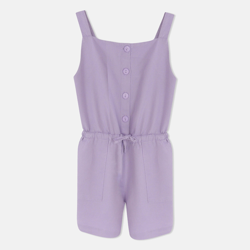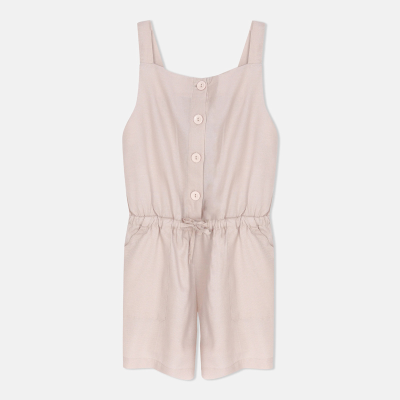 أوفرول بناتي أنيق بخامة ناعمة من تنسيل وكتان. الألوان: توتي فاتح، أخضر فاتح، زهري فاتح. مثالي لأيام الصيف، خفيف ومريح