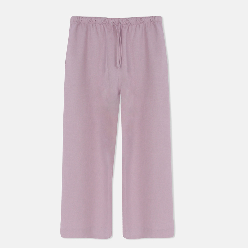 بنطال بناتي أنيق بألوان باستيل ناعمة (توتي فاتح، أخضر فاتح، زهري فاتح). مصنوع من مزيج تينسيل 70? وكتان 30? لراحة وأناقة صيفية مثالية.
