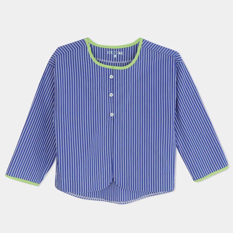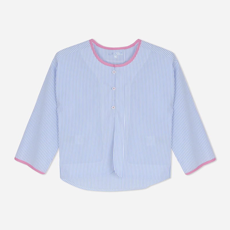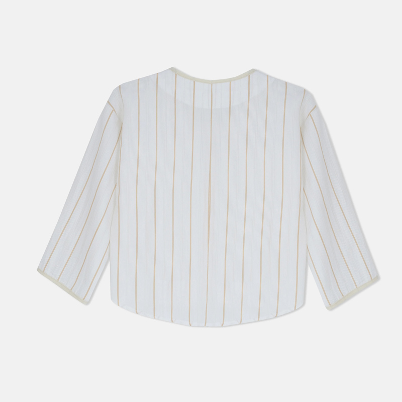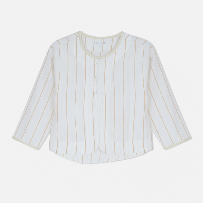 قميص بناتي مخطط أنيق بخامة قطنية مريحة. متوفر بلون سكري مخطط بيج، أزرق مخطط أبيض، وكحلي مخطط أبيض. خفيف ومرن ومثالي للمدرسة أو الطلعات.