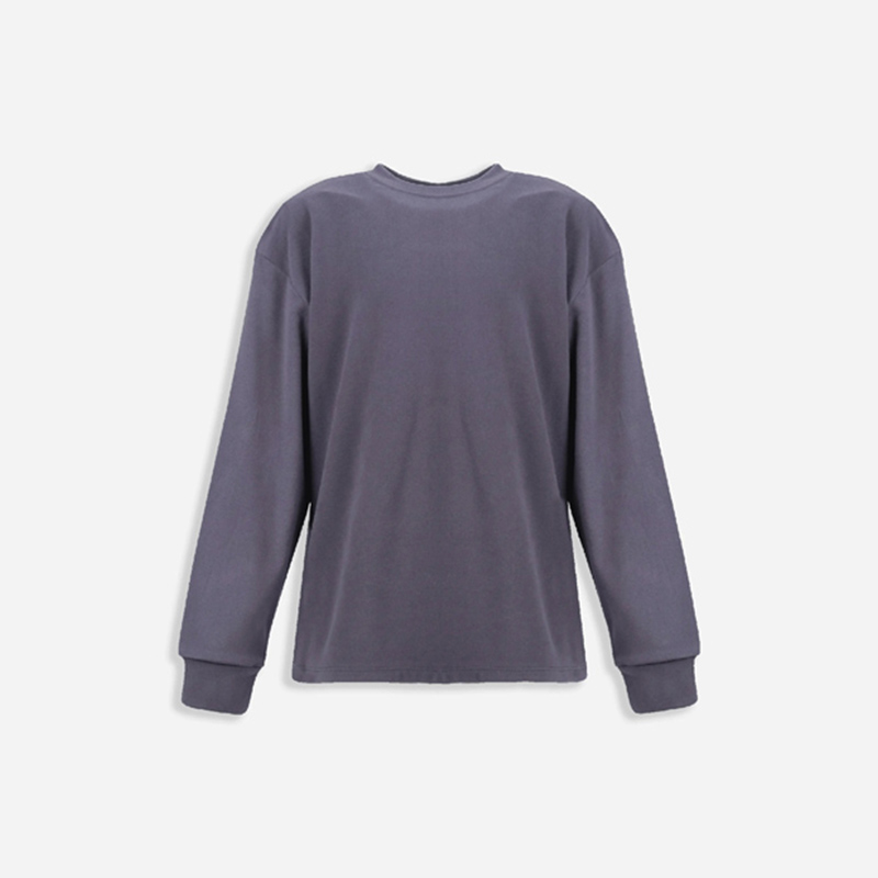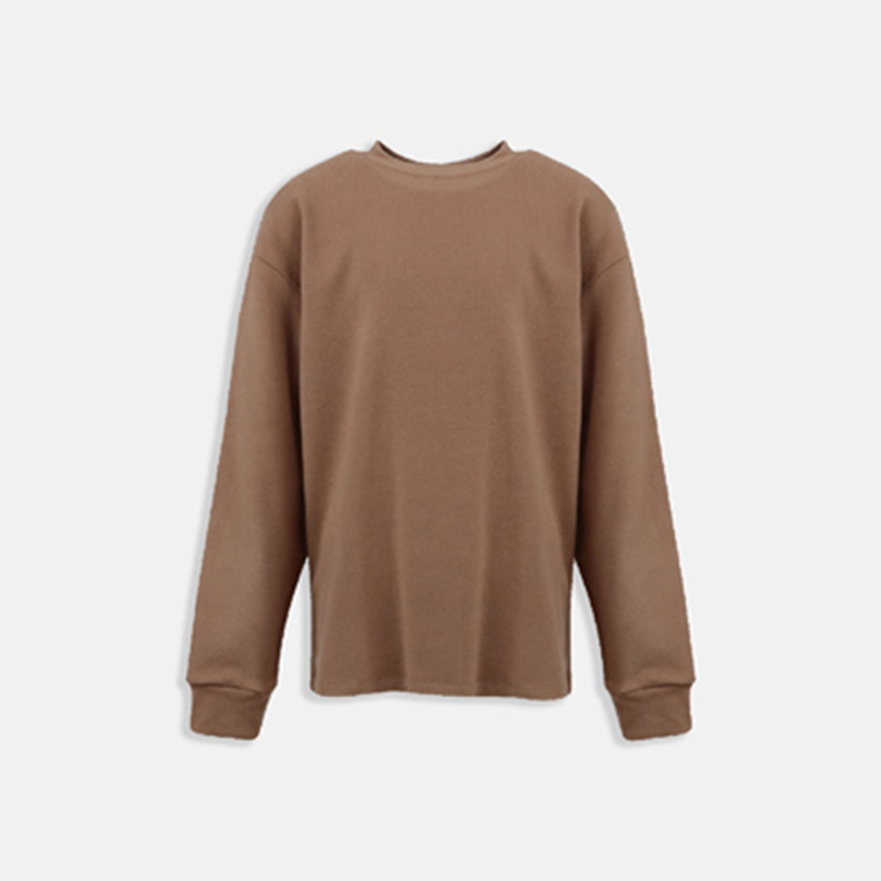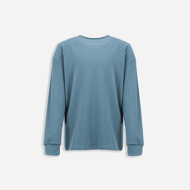 سويت شيرت ولادي مريح وأنيق، مصنوع من خليط 64% فيسكوز، 27.5% أكريليك، و8.5% سباندكس لراحة وحركة مرنة. يتوفر بالألوان البني، الوردي الفاتح، الأزرق، البنفسجي الفاتح، والرمادي، مثالي للمناسبات اليومية