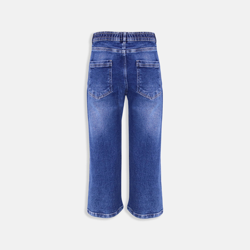 بنطال جينز للفتيات مصنوع من 99% قطن و1% إيلاستين، يتميز بخامة متينة ومرنة توفر الراحة والحرية في الحركة. تصميمه العصري يجعله خيارًا مثاليًا للإطلالات اليومية