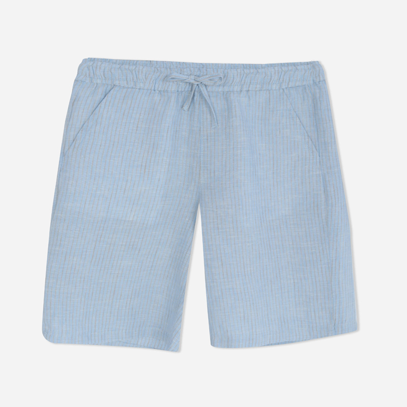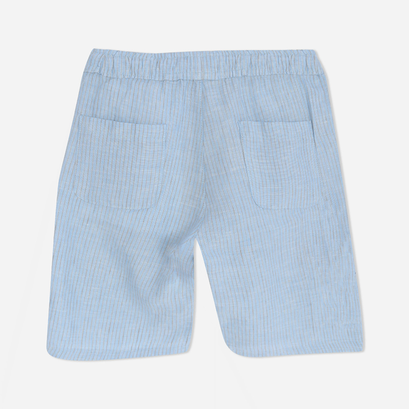شورت رجالي بلون سماوي ورمادي غامق. مصنوع من 100% كتان لراحة وانتعاش في الصيف. مثالي للطلعات اليومية أو الشاطئ. تصميم أنيق وخفيف يمنحك إحساساً بالانتعاش
