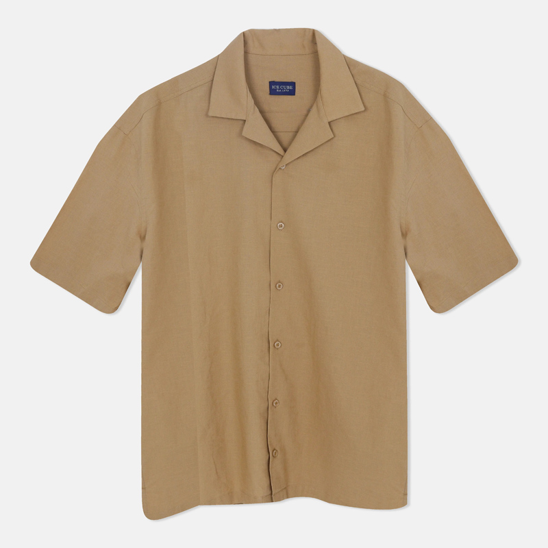 قميص رجالي بأكمام قصيرة من مزيج الكتان والقطن، خفيف ومريح، مثالي لأيام الصيف