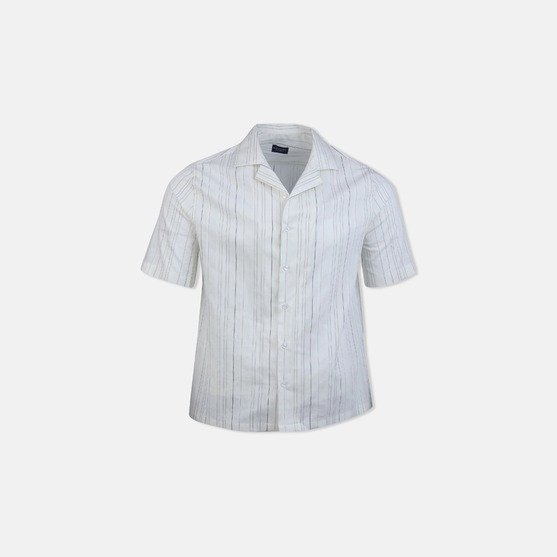 Breathable Men's Button-Up Shirt - Vertical Stripe Pattern