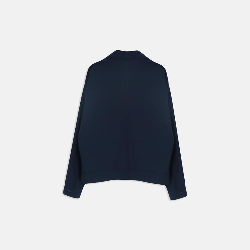 جاكيت رجالي باللونين الأسود والكحلي، مصنوع من مزيج مميز من 28% بوليستر، 39% ألياف باردة، 17% فيسكوز، 13% أسيتات، و 3% سباندكس