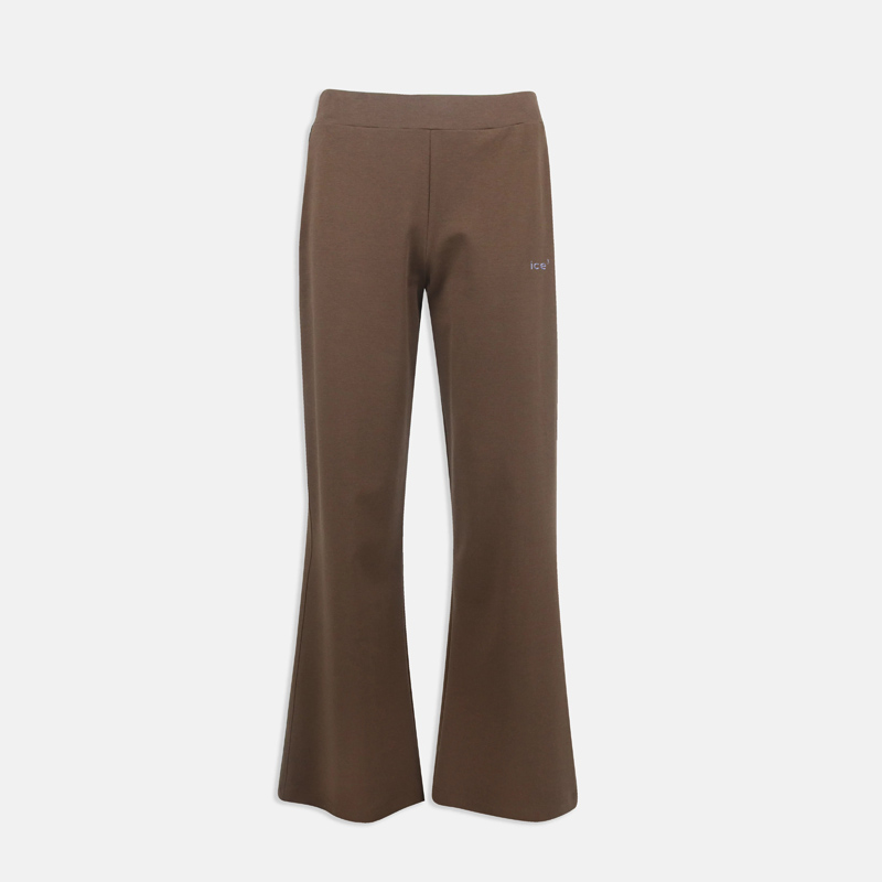 بنطال نسائي بقصّة واسعة من الأسفل بلون زهر، بني، وأسود. مصنوع من مزيج ناعم ومرن من القطن، الليوسيل، البوليستر، والإسباندكس