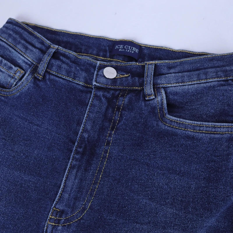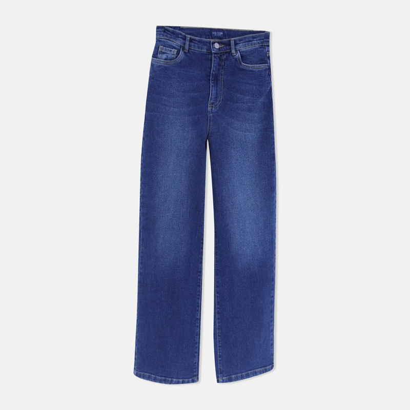 بنطال جينز نسائي مريح و عالي الخصر لايف ستايل. مصنوع من مزيج قطني فاخر (99% قطن، 1% إيلاستين)