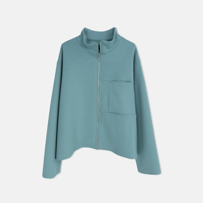 جاكت نسائي أنيق بياقة قائمة وسحاب أمامي، مصمم ليوفر لكِ الأناقة والراحة. مصنوع من مزيج فاخر من البوليستر والرايون والإسباندكس