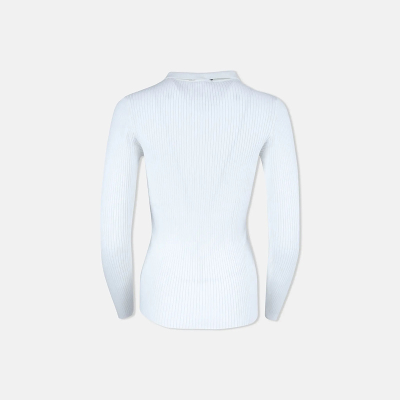 ارقى بإطلالتك اليومية مع هذه البلوزة البولو العصرية. تتميز بملمس قطوب مبطن مفلطر وطوق بولو كلاسيكي، لتجمع ببراعة بين الأناقة والراحة