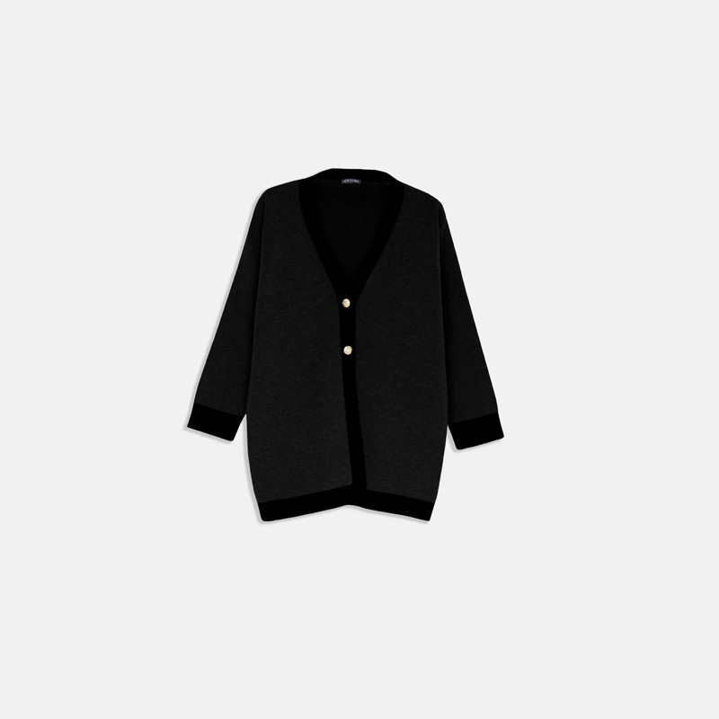 كارديجان نسائي بألوان متنوعة (أسود، رمادي، نيلي، سماوي، وأحمر) مصنوع من مزيج عالي الجودة يتكون من 40% مودال، 30% قطن، و30% نايلون