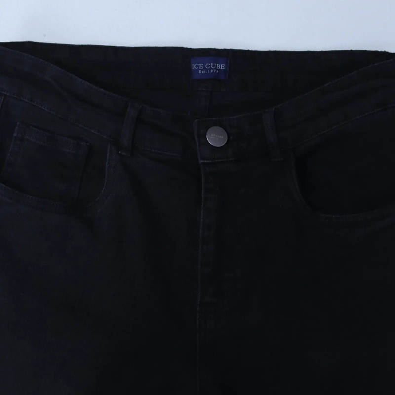 جينز رجالي ستريتش باللون الأسود الكلاسيكي. مزيج القطن والإيلاستين (99% قطن، 1% إيلاستين)