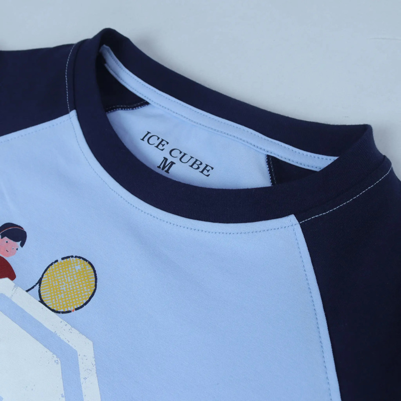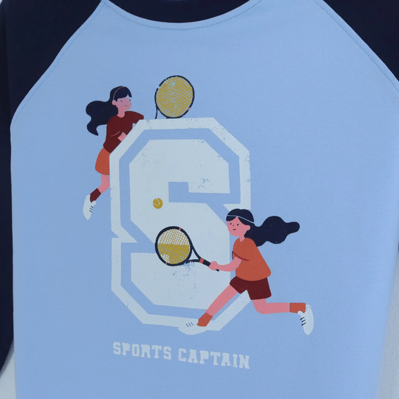 دلّليها بهذا الجاكيت المريح والمصنوع من مزيج ناعم من القطن والبوليستر. يتميز بطبعة جرافيك عصرية وياقة دائرية كلاسيكية