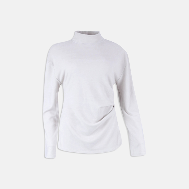 اكتشفي بلوزتنا البروفية الجانبية برقبة مستديرة، المزيج المثالي بين الأناقة والراحة. مصنوعة من خليط ناعم من الأكريليك، الفيسكوز، والإسباندكس