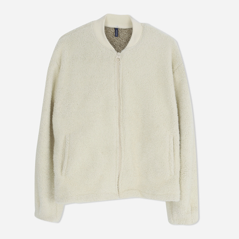 سترة نسائية بسحاب أمامي كامل، بلون بيج أنيق وتصميم عملي يناسب جميع الإطلالات. مصنوعة 100% من القطن الطبيعي لراحة مثالية طوال اليوم. مزيج بين الأناقة والراحة.
