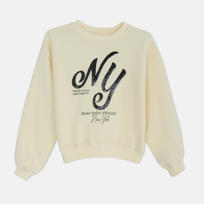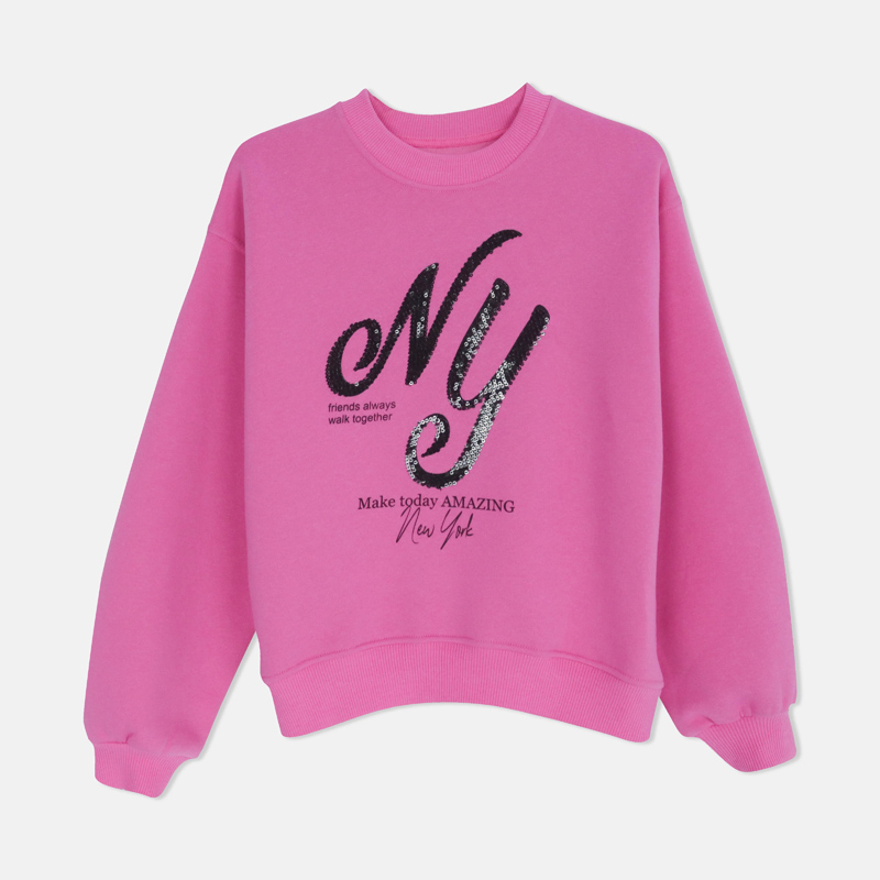أضيفي لمسة عصرية إلى خزانة ملابسها الكاجوال مع سويت شيرت الفتيات بطبعة جرافيك. يتميز هذا البلوفر المريح بقصة دائرية حول الرقبة وطبعة شعار أنيقة ومرحة. مصنوع من مزيج ناعم ومتين من 53% قطن و47% بوليستر