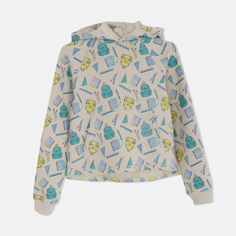 Girls' Cotton Blend School-Themed Print Hoodie