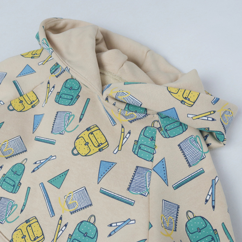 هذا الهودي المريح هو الإضافة المثالية لموسم العودة إلى المدرسة. يتميز بطبعة مرحة من الحقائب المدرسية، المسطرة، والأقلام، ومصنوع من مزيج مريح من 53% قطن و 47% بوليستر