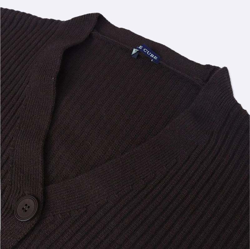 Ribbed V-Neck Cardigan Sweater with Button Front