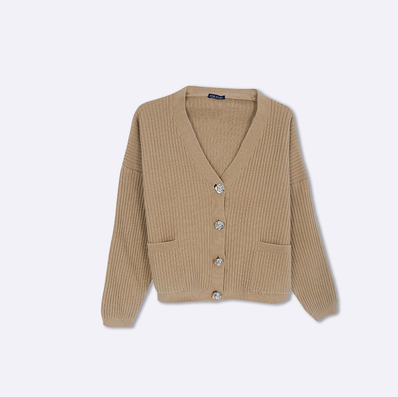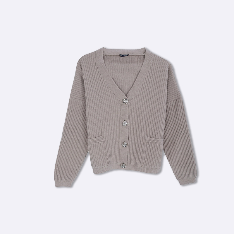 كارديجان أنيق بتصميم مزركر برقبة V وأزرار أمامية. قطعة أساسية تضيفها لخزانتك للأناقة اليومية. مزيج البوليستر، الأكريليك، المودال والنايلون يمنحك راحة لا تضاهى وملمس ناعم مع متانة تدوم طويلاً.